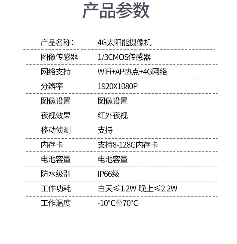 | 商品名称 | 室外防水太陽電池の供給量は4 Gスロットカードの高精細ネットの無線監視カメラが電気がなくてネットがなくて、音声で話すことができます。屋外の養蜂専用の4 Gタイプの太陽エネルギー+128 Gメモリカード |