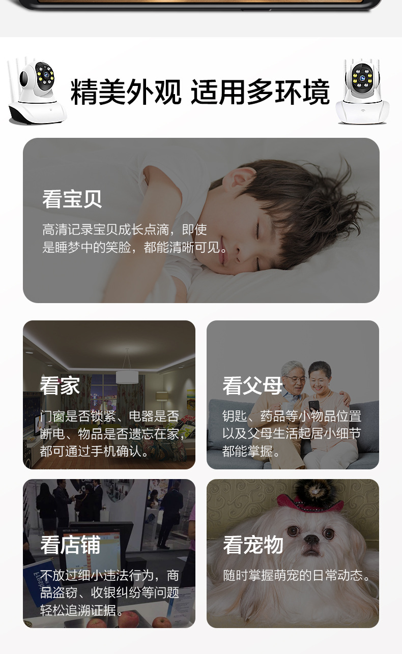 | 商品名称 | デュアル光源携帯電話長距離家庭用ネットワーク室内夜間テレビの高精細監視カメラの電源を切って、航雲台回転室内小型カメラの携帯電話の長距離監視音声の明るさの高清5アンテナの1080 P-ダブルライトのフル夜間テレビ+カードなし |