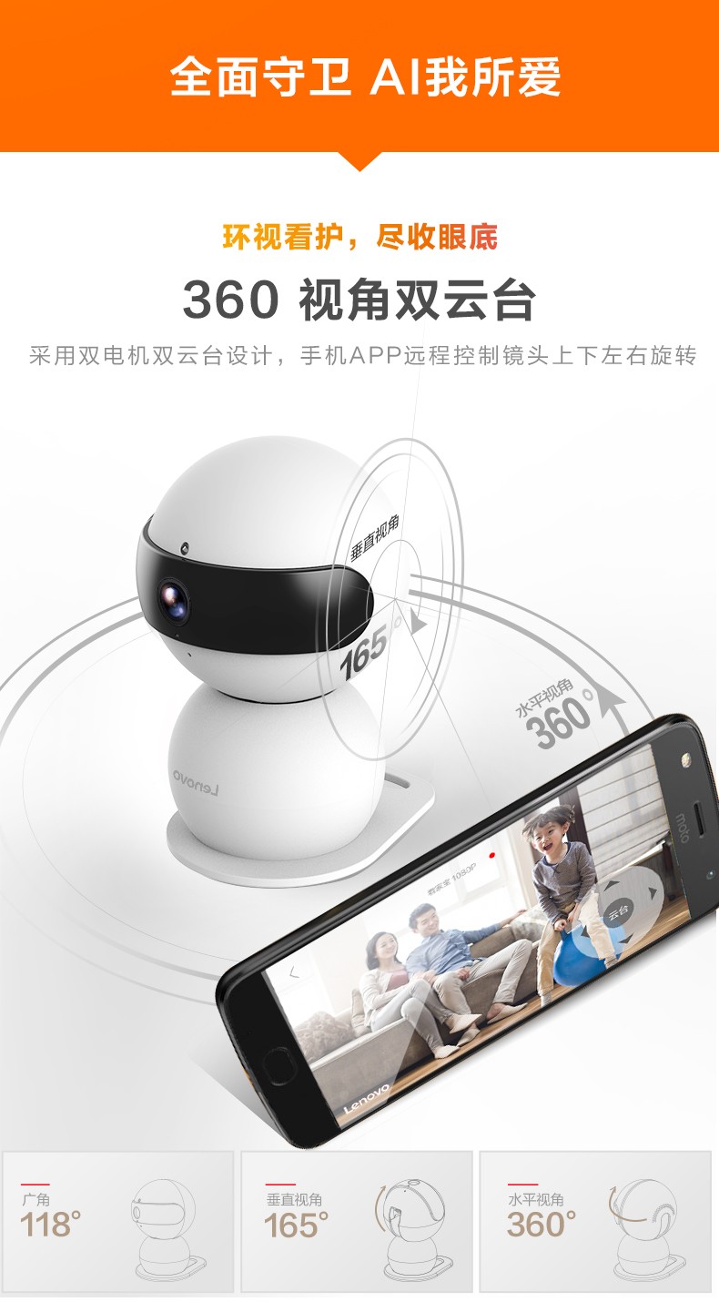 Lenovo(Lenovo)の留守番宝X 1家庭用監視カメラの遠隔無線1080 P高精細室内スマートカメラWiFiネット夜間テレビX 1+32 G【高速カード】+延長線