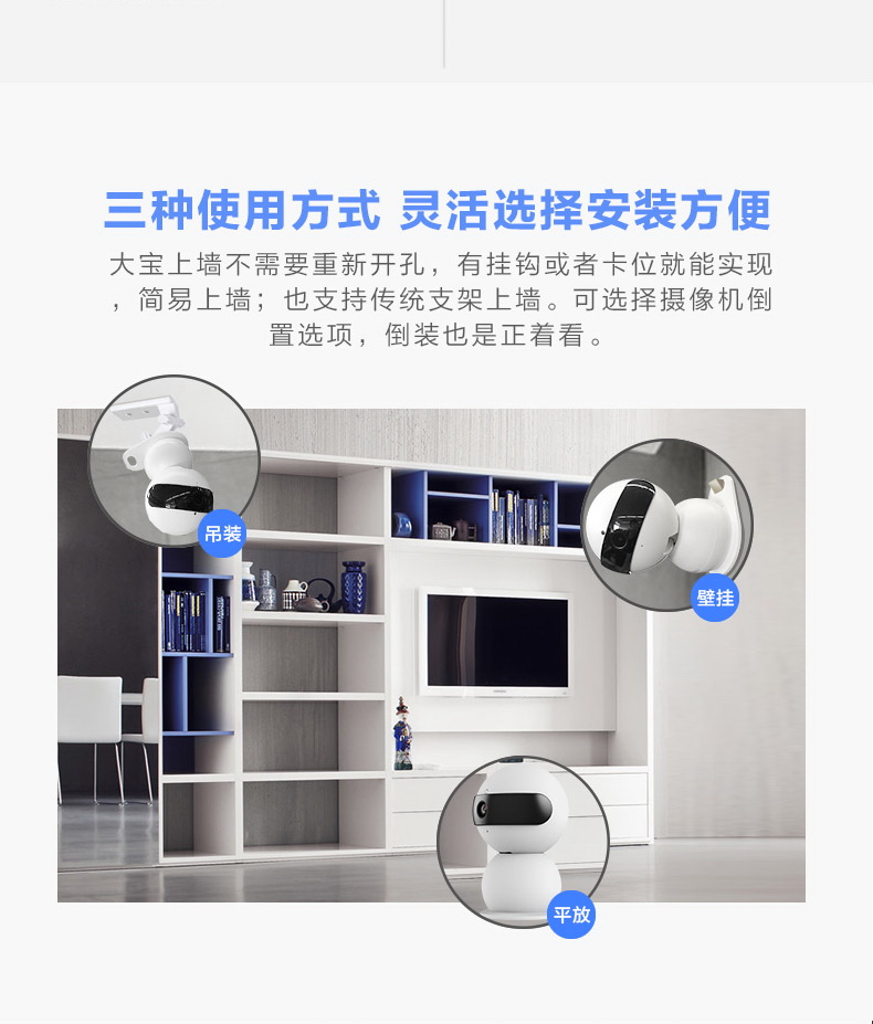 Lenovo(Lenovo)の留守番の宝の大宝の高清の夜のテレビカメラの家庭用室内の監視カメラの携帯電話の遠隔のwifiの監視カメラの大宝の1080 P+上の壁の支え+64 Gカード+延長線